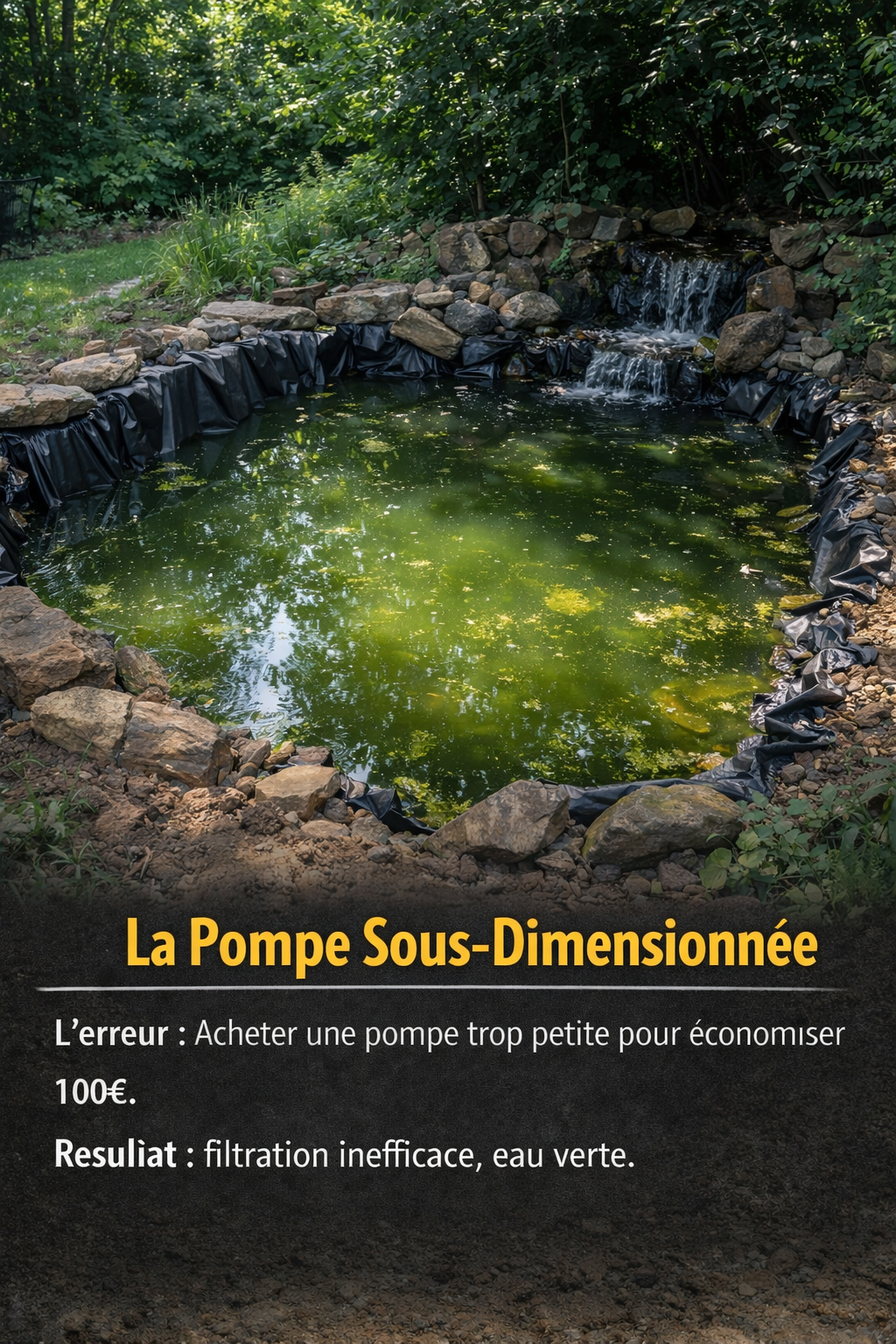 L'erreur : Acheter une pompe trop petite pour économiser 100€. Résultat : filtration inefficace, eau verte.